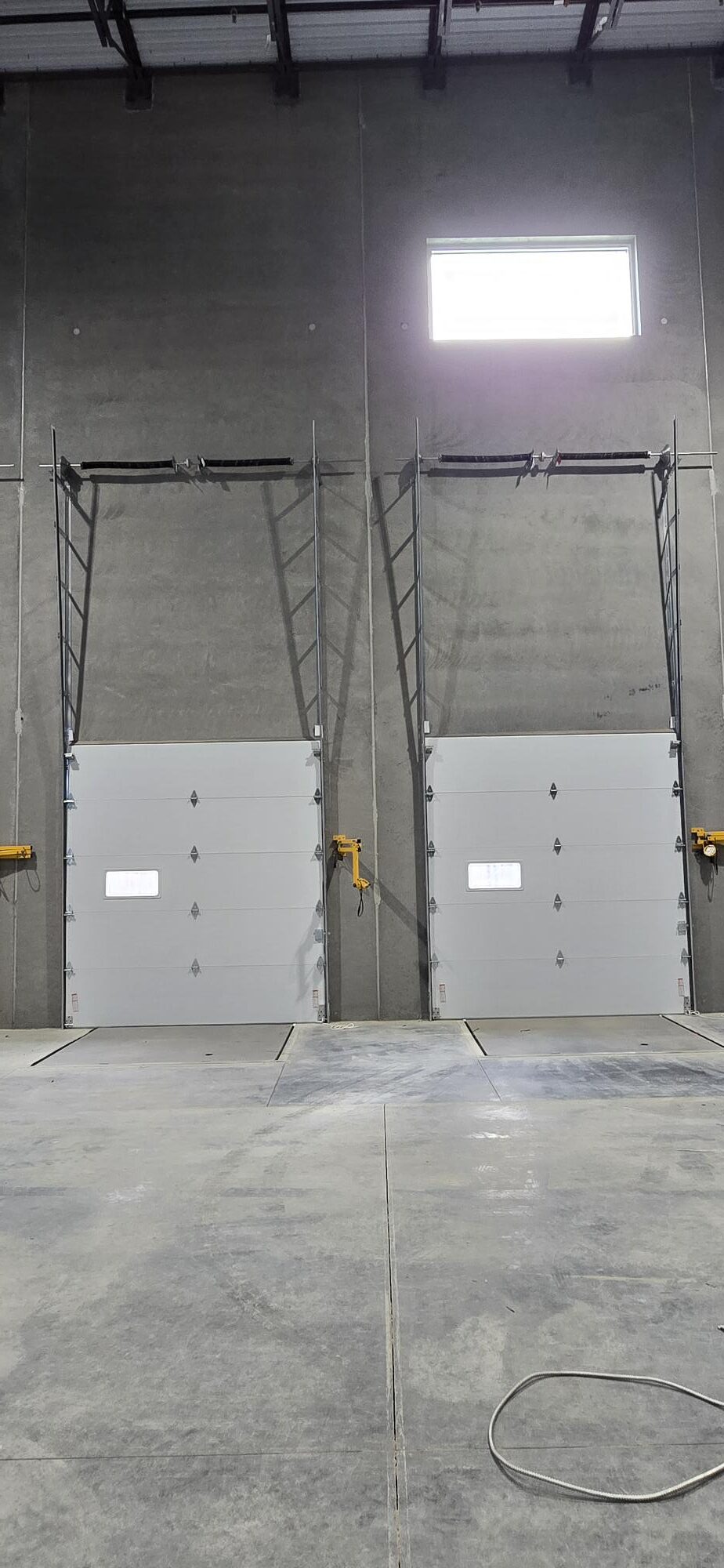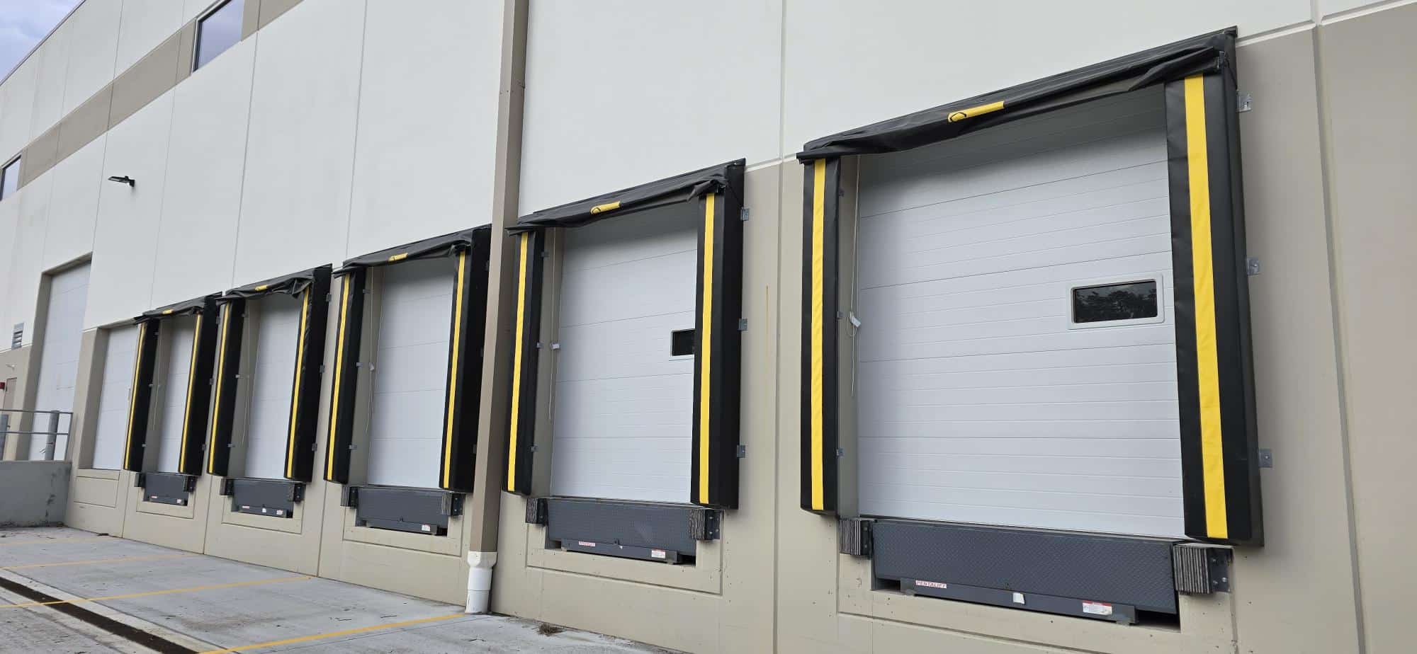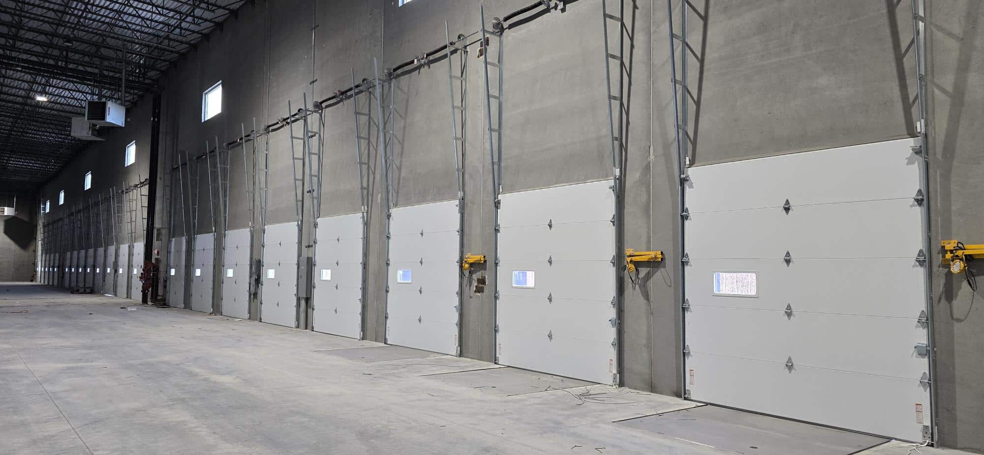 Shank Door had the pleasure of partnering with Development Management Services from Howell, NJ, on a warehouse built in Jackson Township, NJ, for Surge Spaces. We provided dock doors, seals, levelers, and lights, along with four access doors with operators. The doors are CHI 3285 in white, and the dock equipment is from Pentalift. The dock seals have adjustable curtains to accommodate trucks of varying heights. The garage door operators are Genie.